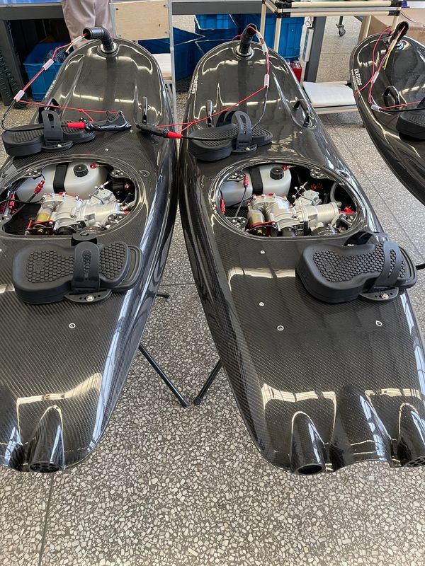 DLE Applied this expertise to design an engine that would fit in a jetboard, then built their own stand alone jetboard around their engine.